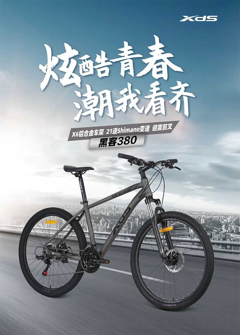 Equipped with Shimano components and 21-speed gearing, the XDS Hacker 380 is the perfect blend of durability, enjoyment and comfort. Whether you're an experienced mountain biker or a casual rider, the Hacker 380 is designed to provide a smooth, safe, and exhilarating riding experience.
